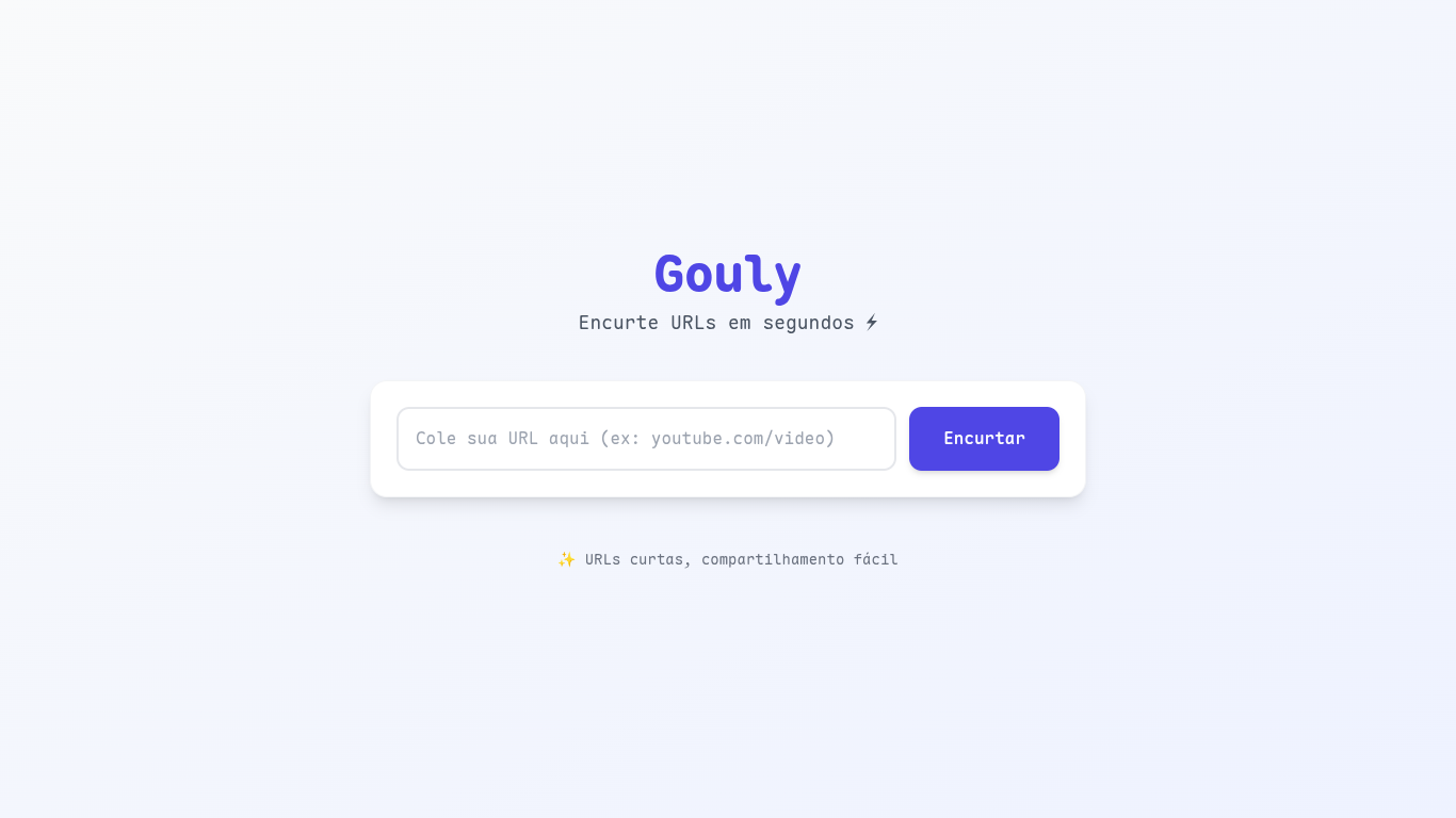 Desenvolvi o gouly, um encurtador de URL. O backend foi feito em Golang, usando PostgreSQL para armazenar os links. Criei também uma interface simples em HTML para o usuário interagir com a aplicação.